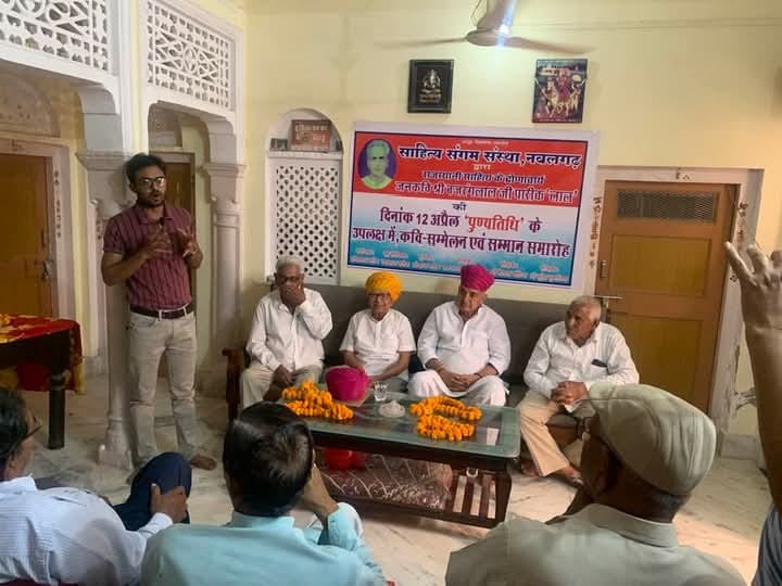 नवलगढ़। राजस्थानी साहित्य के द्रोणाचार्य एवं सुप्रसिद्ध काव्य रचना “चांद चढ़्यो गिगनार” के रचयिता जनकवि बजरंग लाल पारीक ‘लाल’ की 39वीं पुण्यतिथि के अवसर पर एक भव्य काव्य गोष्ठी का आयोजन किया गया।