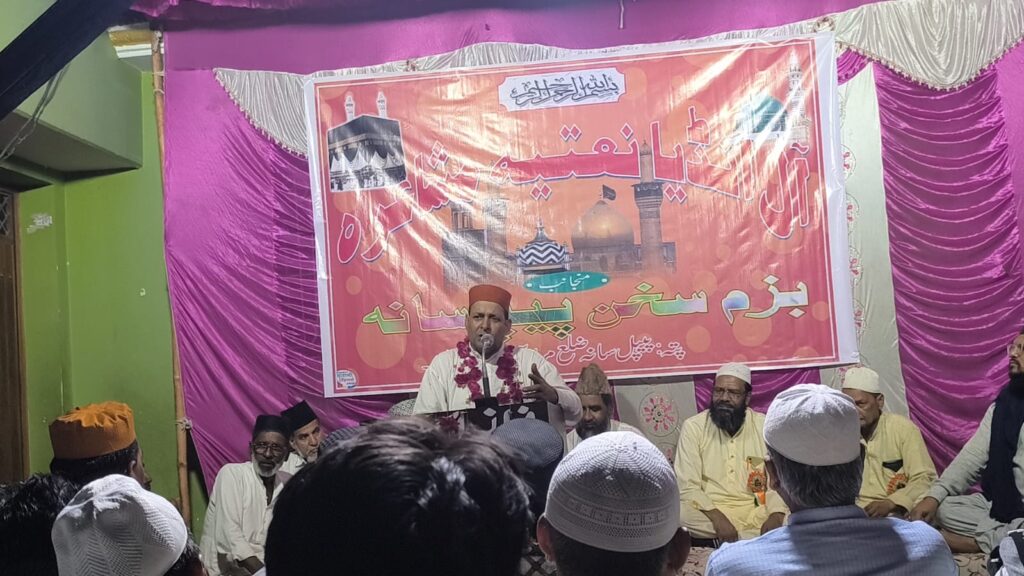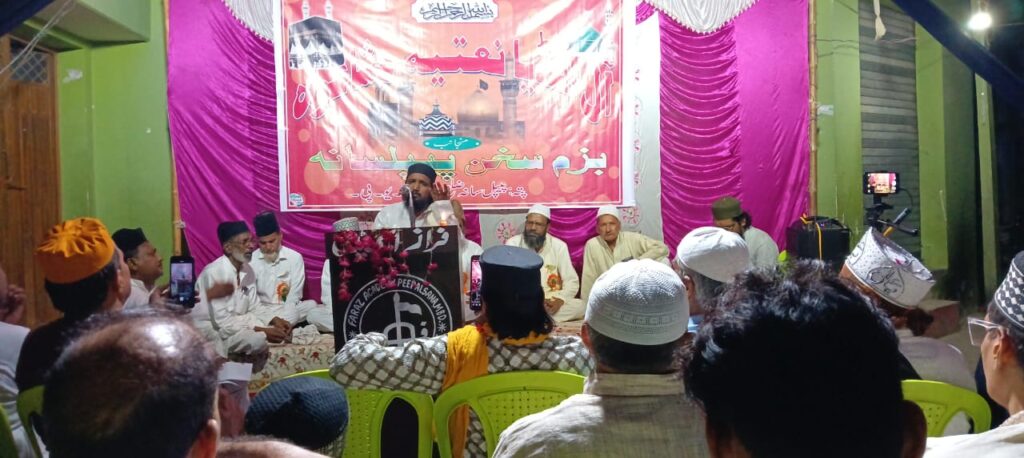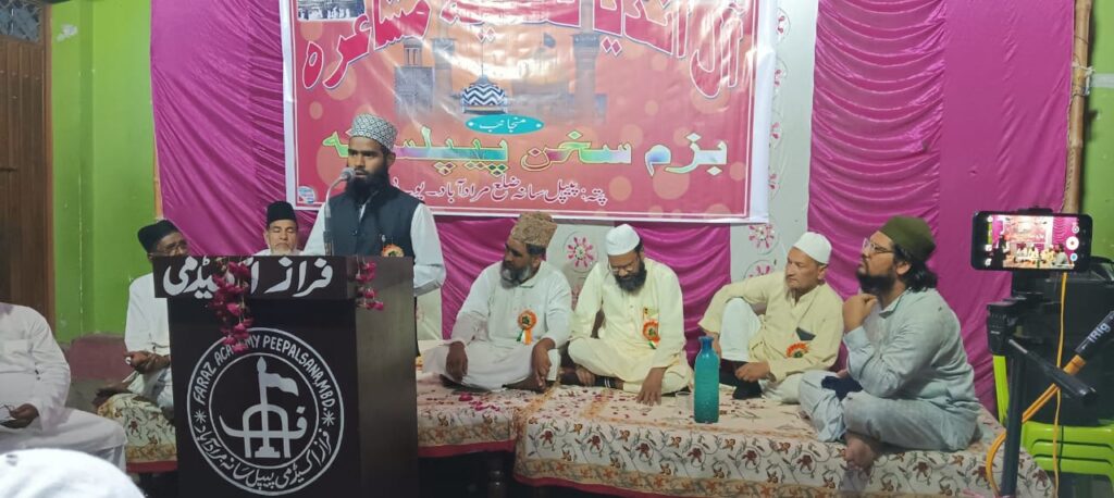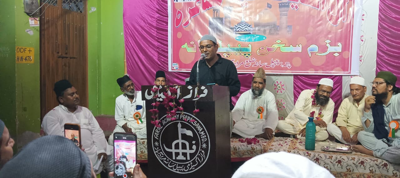 बज्म-ए-सुखन पीपलसाना की जानिब से 12/7/2025 को एक आल इंडिया नातिया मुशायरे का आयोजन हुसैनी चौक पीपलसाना में किया गया जिस में हिन्दुस्तान के मशहूर-ओ-माअरूफ शोअरा-ए-इकराम ने जोश-ओ-खरोश के साथ हिस्सा लिया जिसकी सिदारत बिस्मिल भोजपुरी ने की और निजामत के फराइज सरफराज हुसैन फराज ने बा-खूबी अन्जाम दिए। शम्अ रोशन पूर्व जेल विजिटर इदरीस अहमद, अब्दुल हमीद बिस्मिल, नफीस पाशा, पैकर पानीपती, डा.आजम बुराक, फरहत अली फरहत, वाजिद अली, रियाज़ जमील आदि ने की।