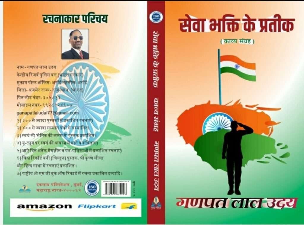 सभी पाठकों को सैनिक/कवि-गणपत लाल उदय अजमेर राजस्थान का सादर वंदन अभिनंदन जयहिंद भारत वर्ष एक विशाल और बहुभाषी देश है यहां अलग-अलग राज्यों में अलग-अलग पहनावा और अलग-अलग भाषाॅं बोली जाती है अपनें विचार एक दूसरें को बतानें व समझाने के लिए एक ऐसी भाषा की ज़रुरत महसूस हुई जिसको देश और विदेश में अधिक से … Continue reading सेवा भक्ति के प्रतीक पुस्तक इंकलाब पब्लिकेशन मुम्बई से हुई लॉन्च
