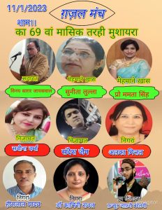 गजल मंच का ऑनलाइन 69 वाँ मासिक तरही मुशायरा सम्पन्न