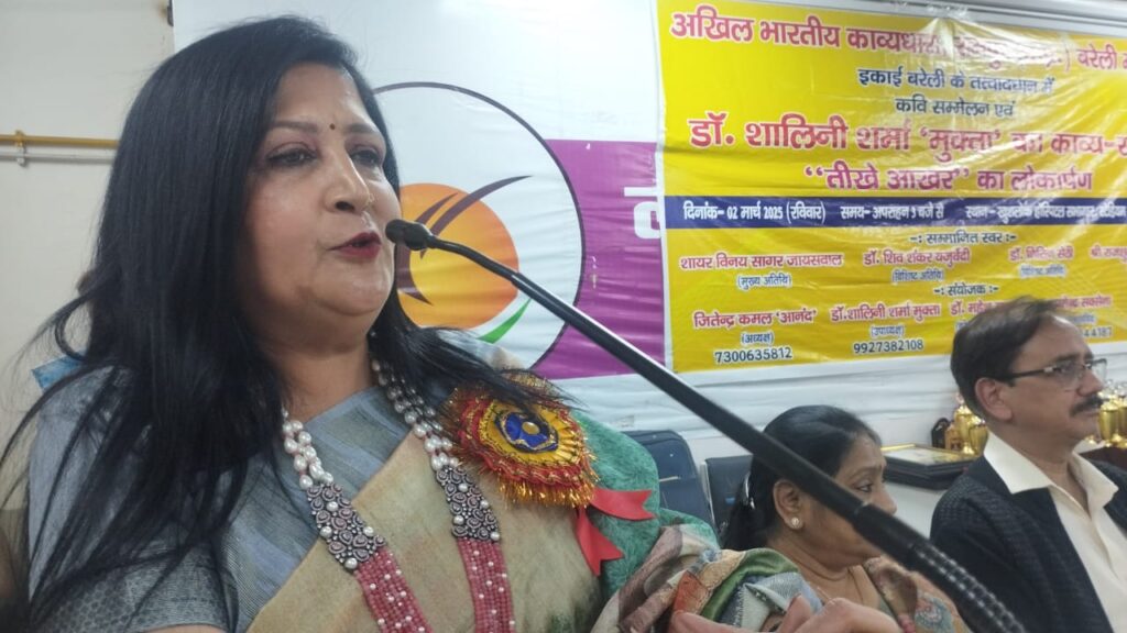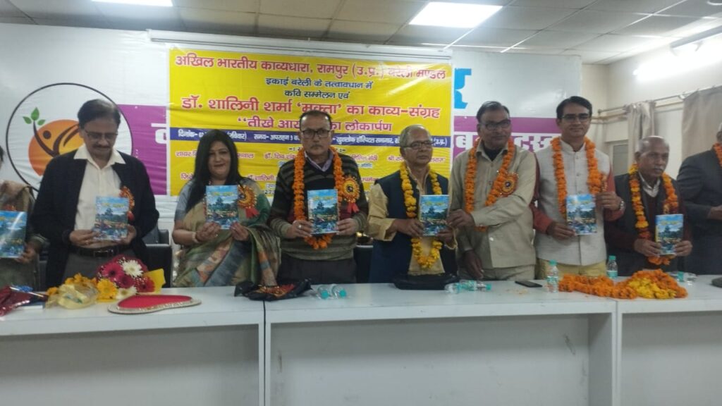 इस अवसर पर कवयित्री शालिनी शर्मा मुक्ता के काव्य संग्रह ‘तीखे आखर’ का विमोचन मंचासीन अतिथियों ने किया।